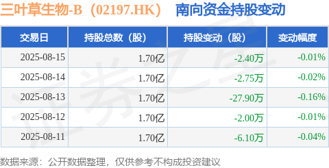 证券之星消息,8月15日南向资金减持2.4万股三叶草生物-B(02197.HK)。近5个交易日中,获南向资金减持的有5天,累计净减持41.15万股。近20个交易日中,获南向资金减持的有20天,累计净减持374.25万股。截至目前,南向资金持有三叶草生物-B(02197.HK)1.7亿股,占公司已发行普通股的13.09%。