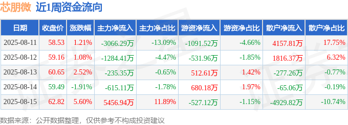 资金流向数据方面,本周芯朋微主力资金合计净流入255.77万元,游资资金合计净流出957.8万元,散户资金合计净流入702.03万元。本周资金流向一览见下表: