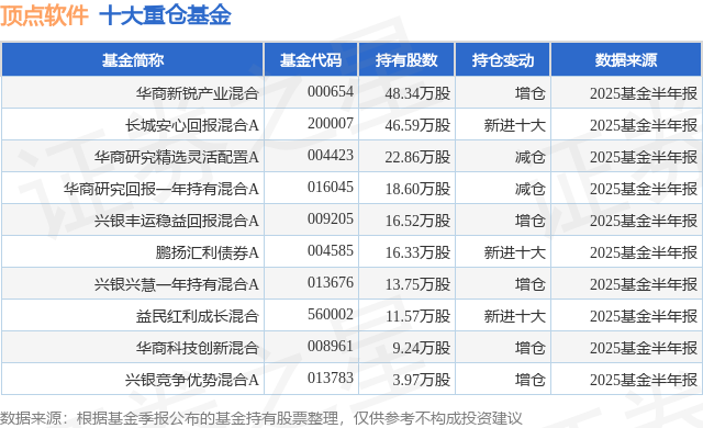 根据2025基金半年报公募基金重仓股数据,重仓该股的公募基金共21家,其中持有数量最多的公募基金为华商基金的华商新锐产业混合。华商新锐产业混合目前规模为10.17亿元,最新净值1.859(8月15日),较上一交易日上涨1.53%,近一年上涨45.01%。该公募基金现任基金经理为童立。童立在任的基金产品包括:华商研究精选灵活配置A,管理时间为2017年12月21日至今,期间收益率为190.6%;华商科技创新混合,管理时间为2020年3月6日至今,期间收益率为83.86%;华商研究回报一年持有混合A,管理时间为2023年3月7日至今,期间收益率为10.74%。