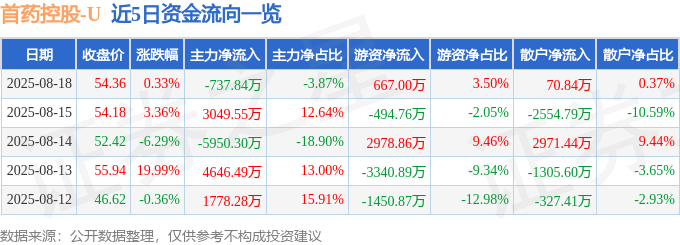 证券之星消息,截至2025年8月18日收盘,首药控股(688197)报收于54.36元,上涨0.33%,换手率5.55%,成交量3.55万手,成交额1.91亿元。