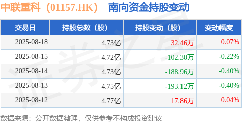 证券之星消息,8月18日南向资金增持32.46万股中联重科(01157.HK)。近5个交易日中,获南向资金减持的有3天,累计净减持434.06万股。近20个交易日中,获南向资金减持的有11天,累计净减持764.5万股。截至目前,南向资金持有中联重科(01157.HK)4.73亿股,占公司已发行普通股的30.43%。