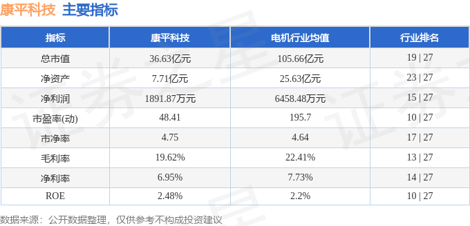 康平科技2025年一季报显示,公司主营收入2.71亿元,同比上升3.72%;归母净利润1891.87万元,同比上升4.45%;扣非净利润1909.75万元,同比上升19.36%;负债率41.74%,投资收益12.99万元,财务费用56.41万元,毛利率19.62%。康平科技(300907)主营业务:主要从事电机及相关产品的研发、设计、生产和销售。