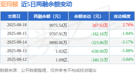 证券之星消息,8月18日,亚玛顿(002623)融资买入1624.61万元,融资偿还1356.98万元,融资净买入267.63万元,融资余额9975.54万元。