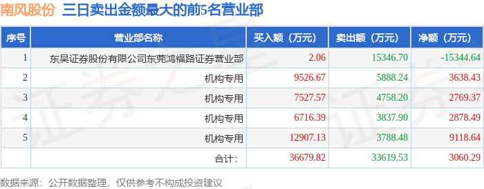 证券之星消息,沪深交易所2025年8月19日公布的交易公开信息显示,南风股份(300004)因连续三个交易日内,涨幅偏离值累计达到30%的证券登上龙虎榜。此次是近5个交易日内第1次上榜。