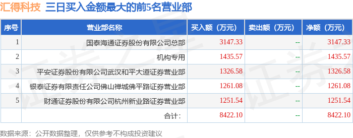证券小知识:龙虎榜是交易所披露的竞价交易公开信息,现身龙虎榜的个股都是当日最为活跃的个股,是投资者日常重点关注的数据。交易所公布当日买入金额和卖出金额前五名的席位,其中一些席位代表特殊意义,如机构专用席位是指基金专用席位、券商自营专用席位、社保专用席位、券商理财专用席位、保险机构专用席位、保险机构租用席位、QFII专用席位等机构投资者买卖证券的专用通道和席位。深股通专用、沪股通专用为北向资金的交易席位。从龙虎榜数据可以发现和研究机构、游资和散户的资金动向。一些营业部席位经常上榜,市场知名度较高,投资者整理代表散户、游资、量化等不同资金的营业部席位。