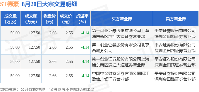 证券之星消息,8月20日ST德豪发生大宗交易,交易数据如下: