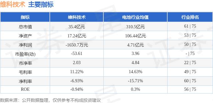 维科技术2025年一季报显示,公司主营收入2.74亿元,同比下降19.72%;归母净利润-1650.7万元,同比下降381.39%;扣非净利润-2719.94万元,同比下降871.3%;负债率37.88%,投资收益-20.26万元,财务费用-68.36万元,毛利率11.22%。维科技术(600152)主营业务:消费类电池(包括聚合物电池、铝壳电池)和小动力电池(包括两轮车电池、电动工具电池、储能电池)的研发、生产和销售。