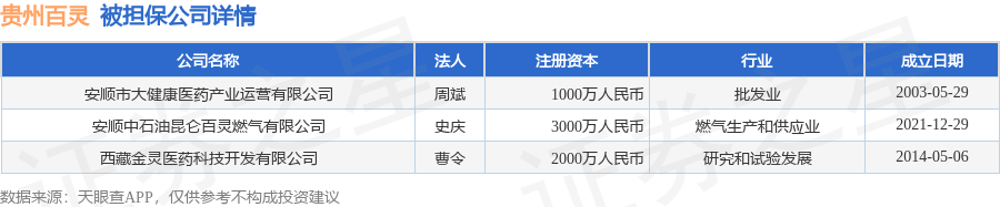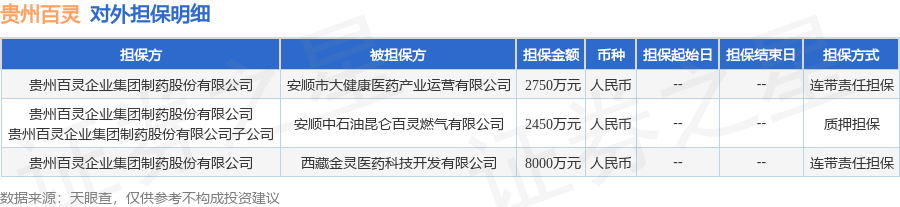 贵州百灵8月19日披露3笔对外担保,被担保公司3家。对外担保明细如下表: