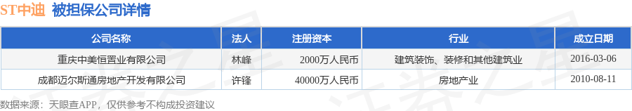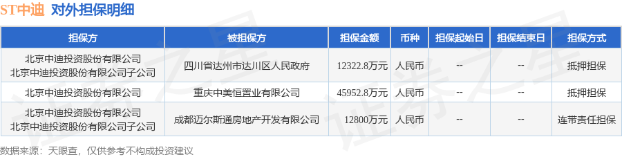 ST中迪8月19日披露3笔对外担保,被担保公司3家。对外担保明细如下表: