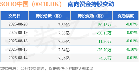 证券之星消息,8月20日南向资金减持50.15万股SOHO中国(00410.HK)。近5个交易日中,获南向资金减持的有5天,累计净减持191.7万股。近20个交易日中,获南向资金减持的有20天,累计净减持530.65万股。截至目前,南向资金持有SOHO中国(00410.HK)7.52亿股,占公司已发行普通股的14.46%。