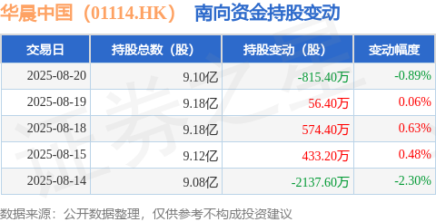 证券之星消息,8月20日南向资金减持815.4万股华晨中国(01114.HK)。近5个交易日中,获南向资金减持的有2天,累计净减持1889.0万股。近20个交易日中,获南向资金减持的有8天,累计净减持1692.6万股。截至目前,南向资金持有华晨中国(01114.HK)9.1亿股,占公司已发行普通股的18.03%。