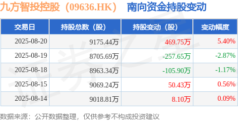 证券之星消息,8月20日南向资金增持469.75万股九方智投控股(09636.HK)。近5个交易日中,获南向资金增持的有3天,累计净增持164.73万股。近20个交易日中,获南向资金增持的有16天,累计净增持1509.42万股。截至目前,南向资金持有九方智投控股(09636.HK)9175.44万股,占公司已发行普通股的19.58%。