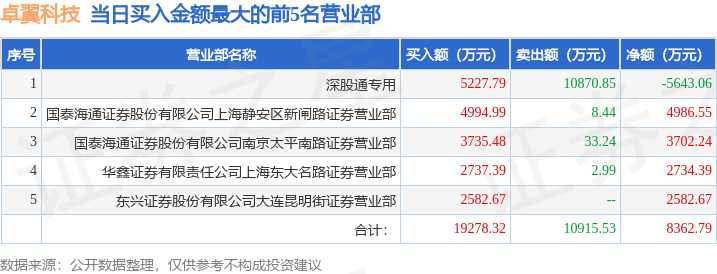 证券之星消息,沪深交易所2025年8月21日公布的交易公开信息显示,卓翼科技(002369)因日涨幅偏离值达到7%的前5只证券登上龙虎榜。此次是近5个交易日内第1次上榜。
