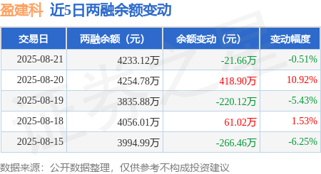 证券之星消息,8月21日,盈建科(300935)融资买入626.83万元,融资偿还648.49万元,融资净卖出21.66万元,融资余额4233.12万元。