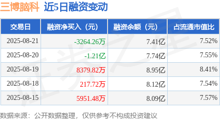 证券之星消息,8月21日,三博脑科(301293)融资买入1.1亿元,融资偿还1.43亿元,融资净卖出3264.26万元,融资余额7.41亿元,近20个交易日中有12个交易日出现融资净买入。
