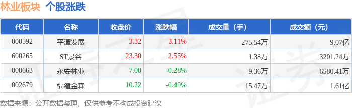 证券之星消息,8月22日林业板块较上一交易日上涨1.82%,平潭发展领涨。当日上证指数报收于3825.76,上涨1.45%。深证成指报收于12166.06,上涨2.07%。林业板块个股涨跌见下表: