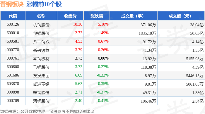从资金流向上来看,当日普钢板块主力资金净流出1.27亿元,游资资金净流出6563.89万元,散户资金净流入1.92亿元。普钢板块个股资金流向见下表: