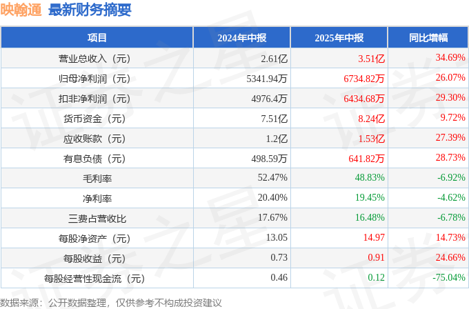 据证券之星公开数据整理,近期映翰通(688080)发布2025年中报。截至本报告期末,公司营业总收入3.51亿元,同比上升34.69%,归母净利润6734.82万元,同比上升26.07%。按单季度数据看,第二季度营业总收入2.02亿元,同比上升30.46%,第二季度归母净利润4507.63万元,同比上升21.4%。本报告期映翰通公司应收账款体量较大,当期应收账款占最新年报归母净利润比达117.94%。