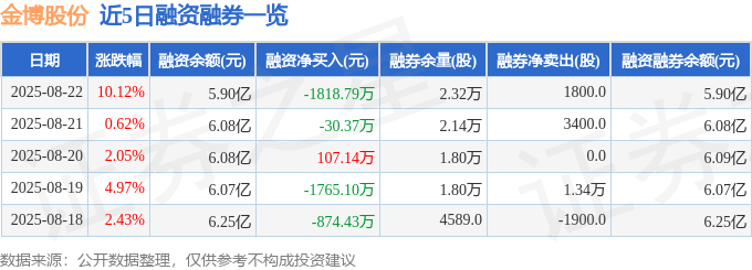 金博股份融资融券信息显示,融资方面,当日融资买入5636.74万元,融资偿还7455.53万元,融资净偿还1818.79万元。融券方面,融券卖出2000.0股,融券偿还200.0股,融券余量2.32万股,融券余额74.2万元。融资融券余额5.9亿元。