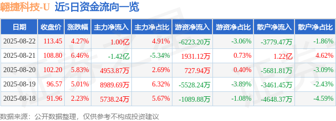 8月22日的资金流向数据方面,主力资金净流入1.0亿元,占总成交额4.91%,游资资金净流出6223.2万元,占总成交额3.06%,散户资金净流出3779.47万元,占总成交额1.86%。
