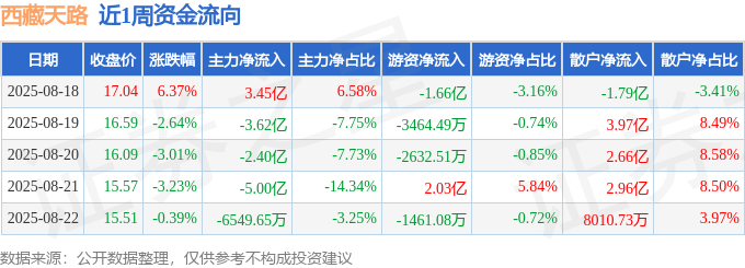 资金流向数据方面,本周西藏天路主力资金合计净流出8.22亿元,游资资金合计净流出3804.81万元,散户资金合计净流入8.6亿元。本周资金流向一览见下表: