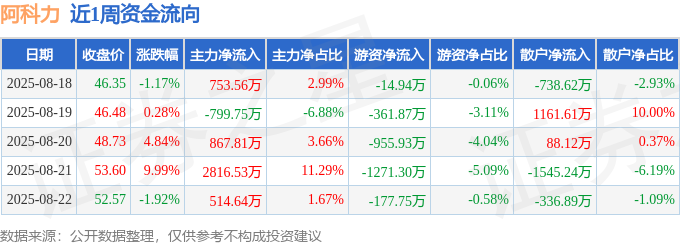 资金流向数据方面,本周阿科力主力资金合计净流入4152.8万元,游资资金合计净流出2781.78万元,散户资金合计净流出1371.02万元。本周资金流向一览见下表: