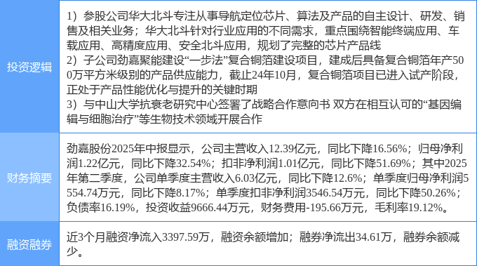 证券之星消息,劲嘉股份8月25日涨停收盘,收盘价4.59元。该股于9点56分涨停,未打开涨停,截止收盘封单资金为3758.15万元,占其流通市值0.57%。