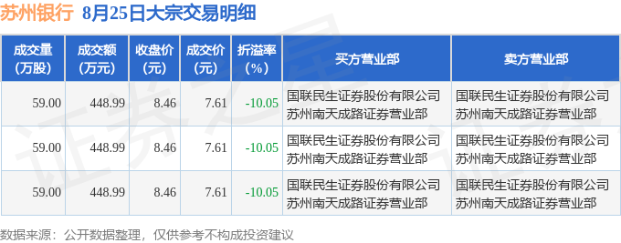 证券之星消息,8月25日苏州银行发生大宗交易,交易数据如下: