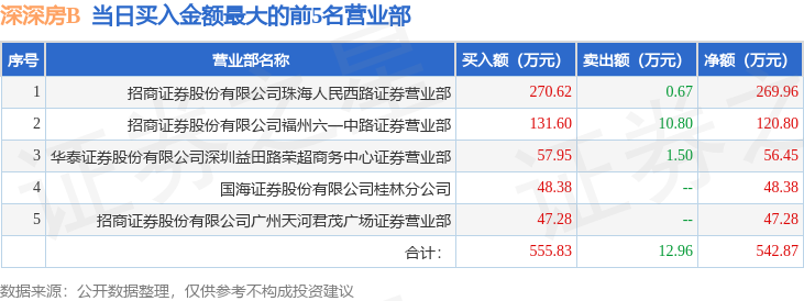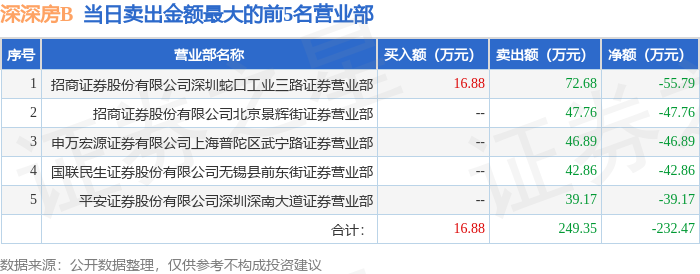 证券之星消息,沪深交易所2025年8月25日公布的交易公开信息显示,深深房B(200029)因日涨幅偏离值达到7%的前5只证券登上龙虎榜。此次是近5个交易日内第4次上榜。