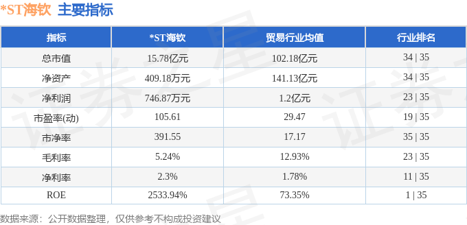 *ST海钦2025年中报显示,公司主营收入3.25亿元,同比上升50.38%;归母净利润746.87万元,同比上升120.41%;扣非净利润516.31万元,同比上升114.39%;其中2025年第二季度,公司单季度主营收入2.42亿元,同比上升541.4%;单季度归母净利润899.94万元,同比上升151.99%;单季度扣非净利润698.32万元,同比上升142.1%;负债率98.67%,投资收益0.53万元,财务费用97.72万元,毛利率5.24%。*ST海钦(600753)主营业务:煤炭(含焦炭)等大宗商品供应链管理业务,并推动战略转型相关工作逐步落实,包括新能源汽车充电基础设施的投资建设、充电智慧平台开发与充电运营服务筹备等。