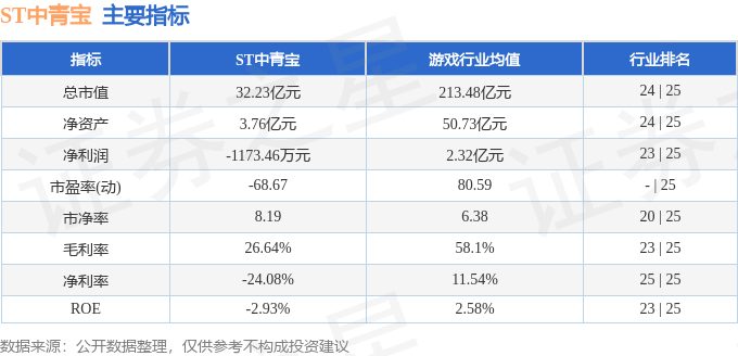 ST中青宝2025年一季报显示,公司主营收入4927.67万元,同比下降34.19%;归母净利润-1173.46万元,同比下降6.73%;扣非净利润-1232.7万元,同比下降11.7%;负债率54.97%,投资收益5.12万元,财务费用272.2万元,毛利率26.64%。ST中青宝(300052)主营业务:游戏业务,云服务业务,数字孪生与文旅业务。