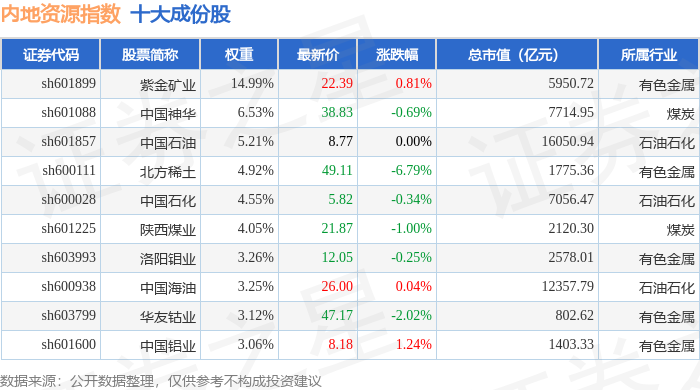资金流向方面,内地资源(000944)指数成份股当日主力资金净流出合计66.94亿元,游资资金净流入合计26.94亿元,散户资金净流入合计40.0亿元。成份股资金流向详情见下表: