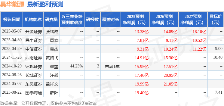 证券之星数据中心根据近三年发布的研报数据计算,德邦证券翟堃研究员团队对该股研究较为深入,近三年预测准确度均值为44.23%,其预测2025年度归属净利润为盈利15.95亿,根据现价换算的预测PE为6.96。