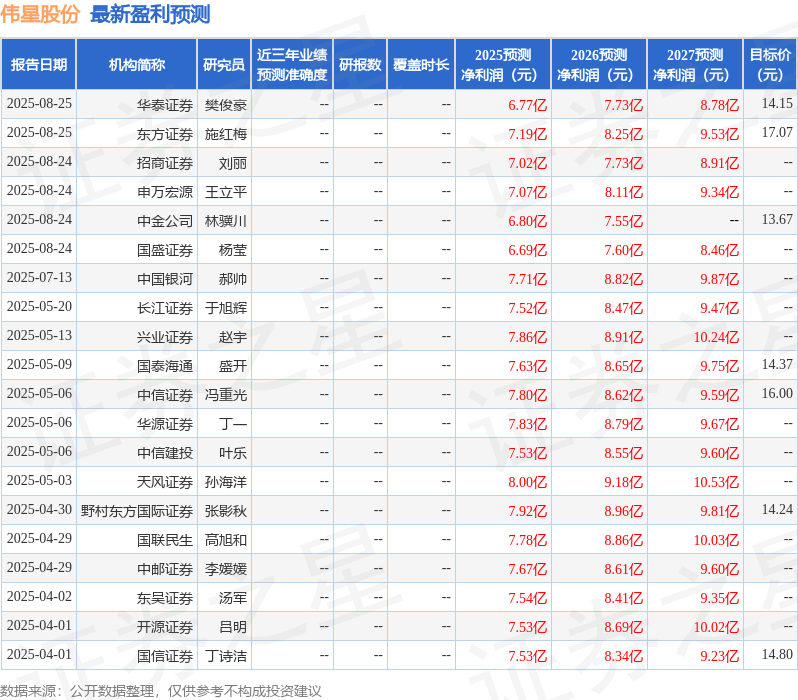 最新盈利预测明细如下: