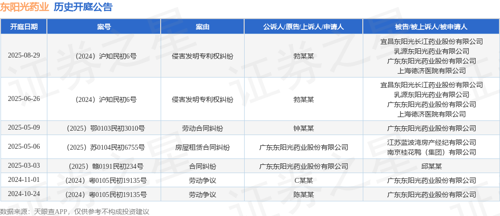 证券之星消息,根据天眼查APP显示,近日公布了一则广东东阳光药业股份有限公司作为被告/被上诉人的开庭公告,详细内容如下: