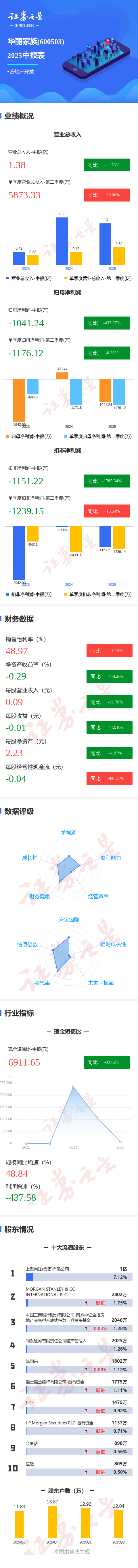 证券之星消息,华丽家族2025年中报显示,公司主营收入1.38亿元,同比下降11.76%;归母净利润-1041.24万元,同比下降437.58%;扣非净利润-1151.22万元,同比下降1785.55%;其中2025年第二季度,公司单季度主营收入5873.33万元,同比上升39.0%;单季度归母净利润-1176.12万元,同比下降0.37%;单季度扣非净利润-1239.15万元,同比上升13.55%;负债率19.06%,投资收益11.35万元,财务费用-515.31万元,毛利率48.97%。
