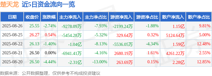 8月26日的资金流向数据方面,主力资金净流出9278.09万元,占总成交额7.93%,游资资金净流出2199.24万元,占总成交额1.88%,散户资金净流入1.15亿元,占总成交额9.81%。