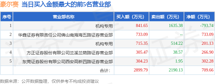证券之星消息,沪深交易所2025年8月27日公布的交易公开信息显示,豪尔赛(002963)因日振幅值达到15%的前5只证券登上龙虎榜。此次是近5个交易日内第1次上榜。