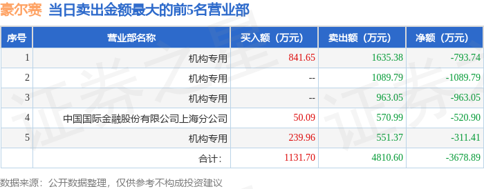 从龙虎榜公布的当日买卖数据来看,机构合计净卖出2956.86万元。