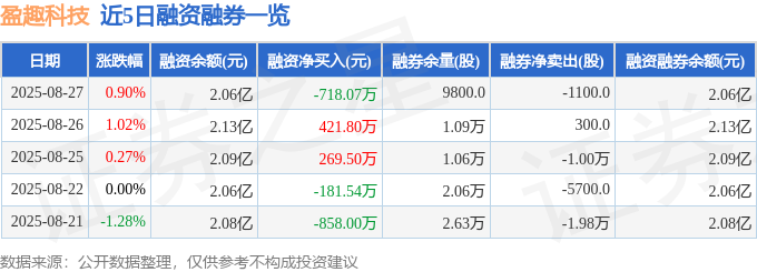 盈趣科技融资融券信息显示,融资方面,当日融资买入3526.2万元,融资偿还4244.27万元,融资净偿还718.07万元。融券方面,融券卖出400.0股,融券偿还1500.0股,融券余量9800.0股,融券余额18.59万元。融资融券余额2.06亿元。