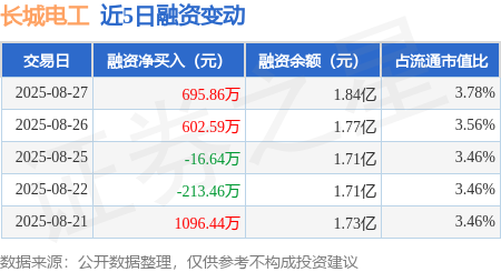 证券之星消息,8月27日,长城电工(600192)融资买入2676.64万元,融资偿还1980.78万元,融资净买入695.86万元,融资余额1.84亿元。