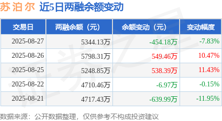 证券之星消息,8月27日,苏 泊 尔(002032)融资买入650.42万元,融资偿还1110.52万元,融资净卖出460.1万元,融资余额5287.98万元。