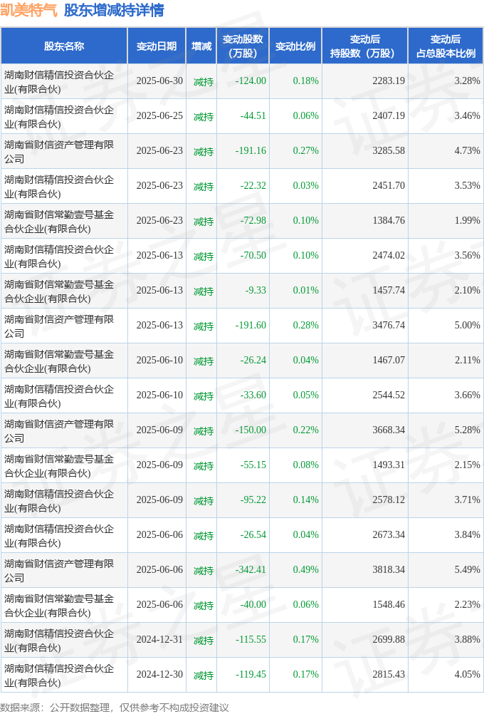 该股近半年内有股东持股变动,合计净减持1730.56万股,股东增减持明细如下表: