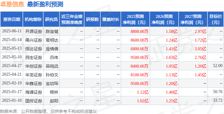 最新盈利预测明细如下: