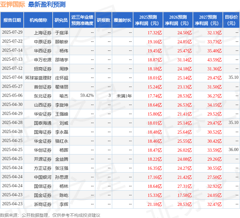 开源证券股份有限公司金益腾,徐正凤近期对亚钾国际进行研究并发布了研究报告《公司信息更新报告:钾肥量利齐升助力业绩高增,新建产能有序推进》,给予亚钾国际买入评级。
