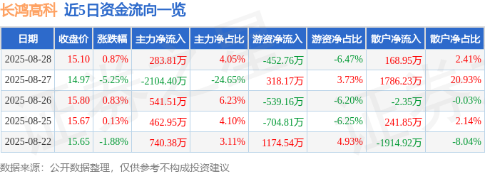 8月28日的资金流向数据方面,主力资金净流入283.81万元,占总成交额4.05%,游资资金净流出452.76万元,占总成交额6.47%,散户资金净流入168.95万元,占总成交额2.41%。