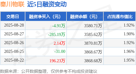 证券之星消息,8月28日,秦川物联(688528)融资买入592.66万元,融资偿还597.57万元,融资净卖出4.91万元,融资余额3580.71万元。