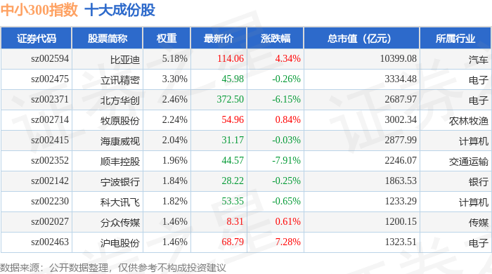 资金流向方面,中小300(399008)指数成份股当日主力资金净流出合计109.81亿元,游资资金净流入合计23.75亿元,散户资金净流入合计86.06亿元。成份股资金流向详情见下表: