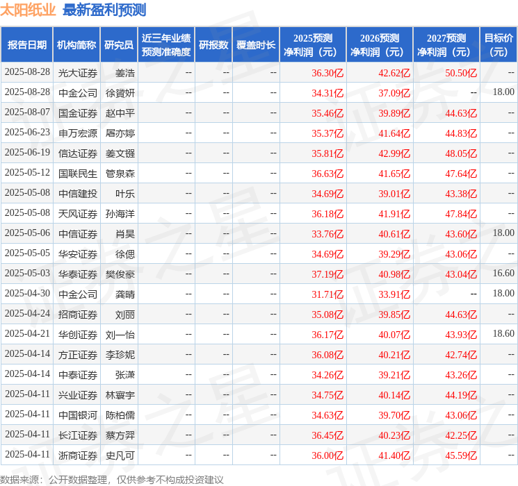 投资建议:行业端,政策驱动之下,行业有望向绿色低碳化、数字化、制造智能化方向演进,具备先进产能叠加林浆纸一体化优势的头部企业有望受益。公司端,未来三大生产基地产能持续释放,有望驱动公司产品结构多元化发展。我们预计,2025-2027年公司归母净利润分别为35.42/40.53/46.74亿元,对应EPS为1.27/1.45/1.67元,当前股价对应PE为11.76/10.27/8.91倍。维持“买入”评级。