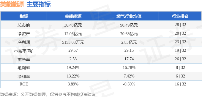 美能能源2025年中报显示,公司主营收入3.88亿元,同比上升19.08%;归母净利润5153.08万元,同比上升30.15%;扣非净利润4635.13万元,同比上升36.53%;其中2025年第二季度,公司单季度主营收入1.43亿元,同比上升24.03%;单季度归母净利润2502.68万元,同比上升28.73%;单季度扣非净利润2179.14万元,同比上升26.66%;负债率25.26%,投资收益821.68万元,财务费用-194.21万元,毛利率19.24%。美能能源(001299)主营业务:城镇燃气的输配与运营业务,包括天然气终端销售和服务以及天然气用户设施设备安装业务。